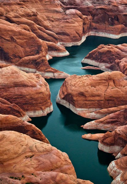 Lake Powell is a reservoir on the Colorado River. It is the second largest man-made reservoir in the United States storing 24,322,000 acre feet (30 km³) of water when full. Lake Powell was created by the flooding of Glen Canyon by the Glen Canyon Dam, which also led to the creation of Glen Canyon National Recreation Area, a popular summer destination.
