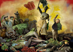 Using vegetables of all shapes and sizes, Chinese artist, Ju Duoqi, recreates famous masterpieces, like The Last Supper, or Mona Lisa. Ju Duoqi first started working with vegetables in the summer of 2006, when she spent two days peeling a few kilograms of peas, before stringing them on a wire and transforming them in a skirt, a top, a headdress and a magic wand. This was her first experience with vegetable art, and it was called Pea Beauty Pageant. In the years that followed, Ju Duoqi spent a lot of her time going to the vegetable market, picking them up and placed them in different positions, to see which ones made them more interesting. She discovered the different colors and textures of vegetables offered a rich source of imagery. And frying, boiling, drying, pickling or letting them rot made them even more interesting. The artist realized she no longer needed models for her artworks, as the vegetables could easily be used as models and props alike. The Chinese artist decided to restage La Liberte Guidant le Peuple, using only vegetables, and called it La Liberte Guidant les Legumes. She used rotting ketchup for blood, potatoes as soldiers and rotting vegetables as background. She went on to create the vegetable art masterpieces you see below. Ju Duoqi hardly ever leaves her home, and when she does she rarely travels for over 15 km, so she created her vegetable art for all women who love their home. She considers it an environmental way of bringing art and life together.